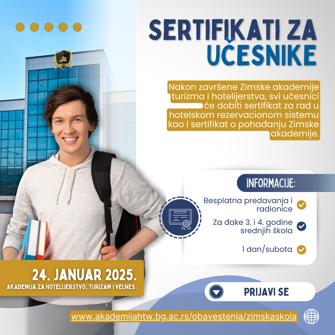 Akademija za hotelijerstvo, turizam i velnes vas poziva da se prijavite za učešće u BESPLATNOJ Zimskoj akademiji hotelijerstva i turizma.